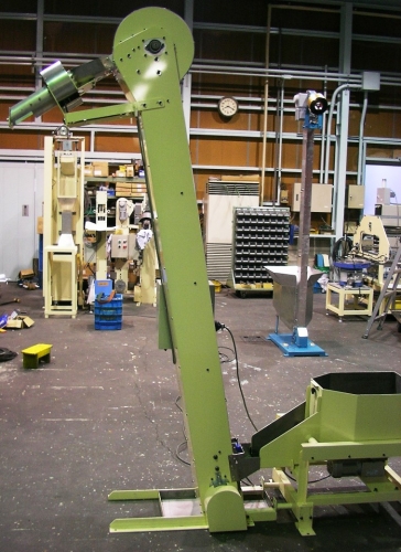 | 大きさ(mm) | 排出高さ:1000~2000 搬送ベルト幅:100~200 W:ベルト幅+400×H:排出高さ+530×D:1650(台車含む) *)上記は標準設計品の仕様です。 搬送部品の大きさ、重量排出高さなどお客様のご要望に応じ、別途各種設計が可能です |